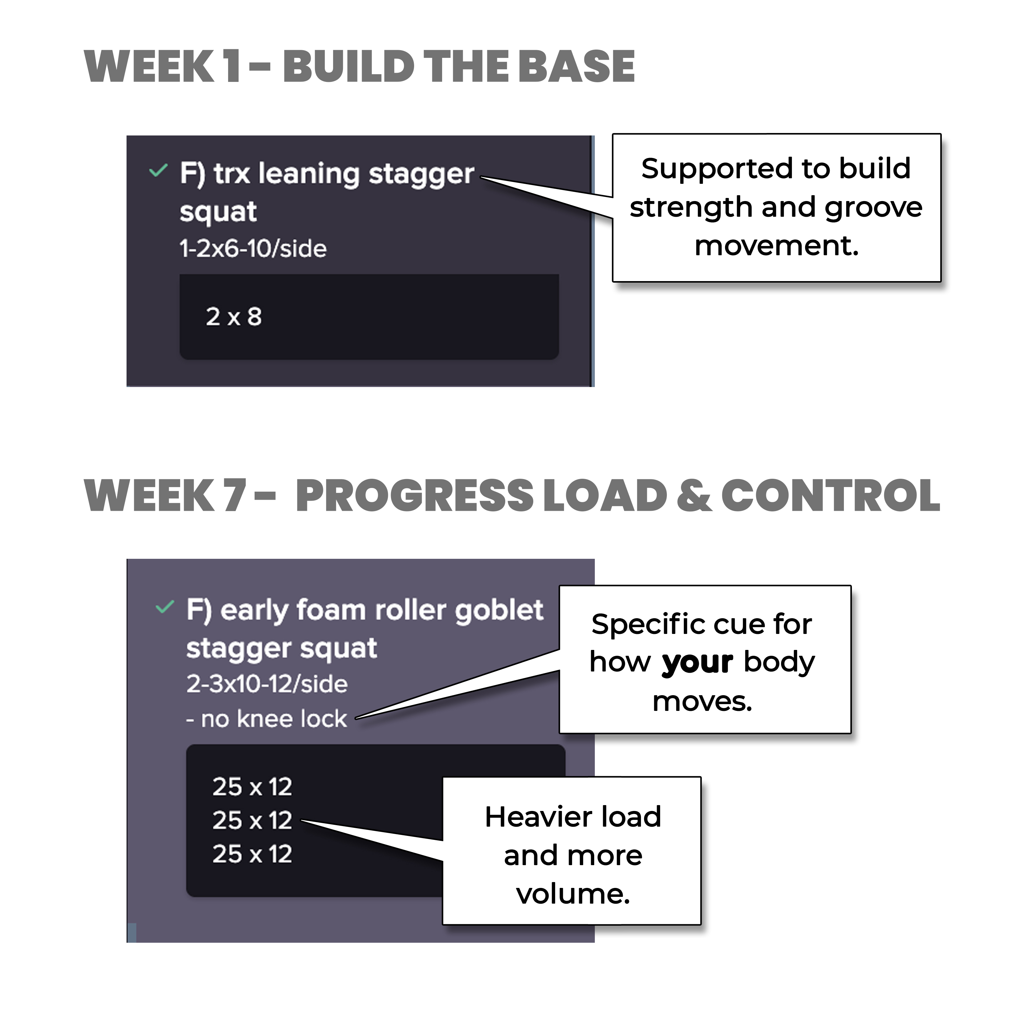 Here's how we progressed a client's squat pattern from one block to the next
